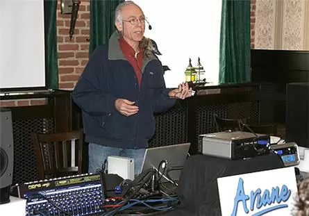 Een van de buitenlandse professionals was David Reaves van het bedrijf Translantech. Translantech is bekend van de wereldberoemde Ariane leveler. David trapte de dag af met zijn workshop over audio leveling.