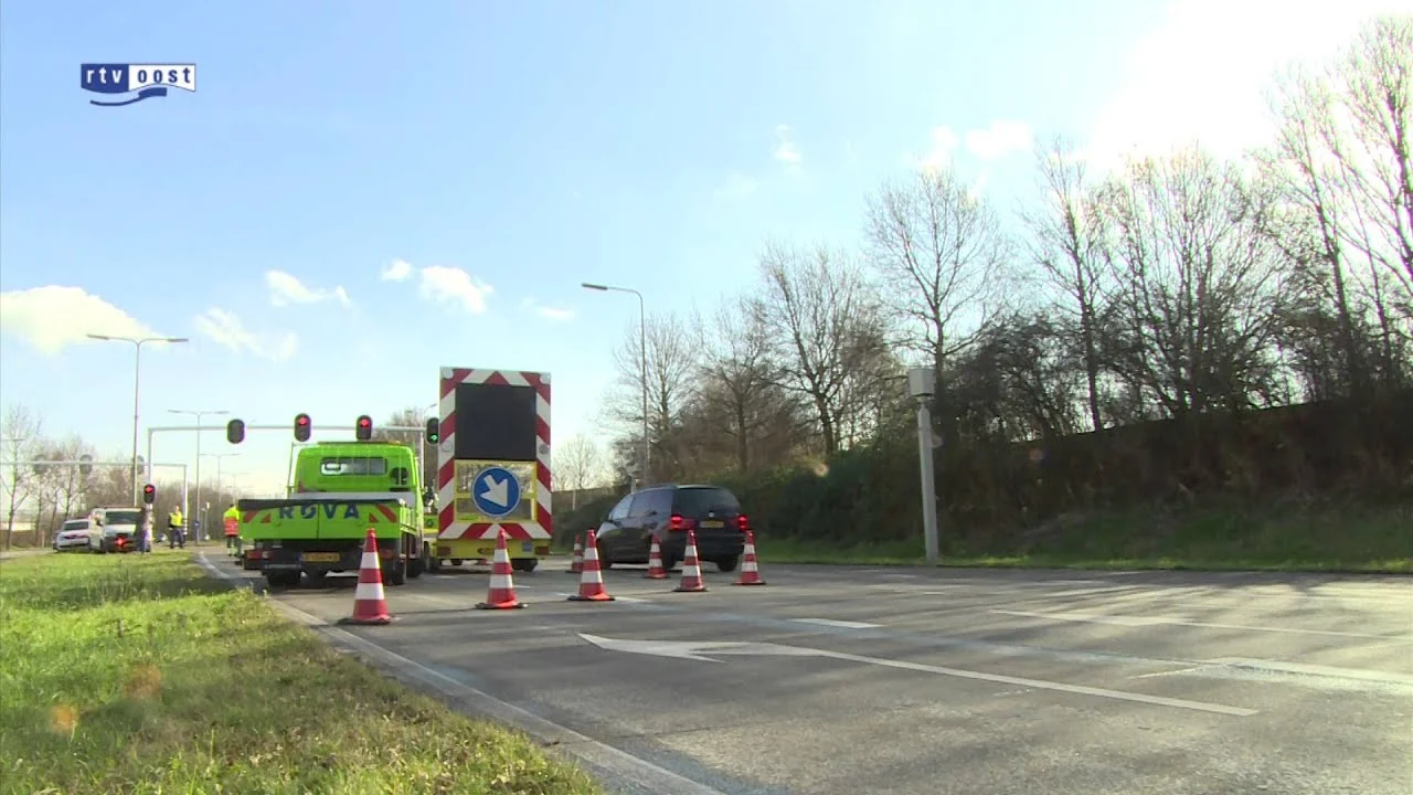 Zendwagen RTV Oost ramt verkeerslicht