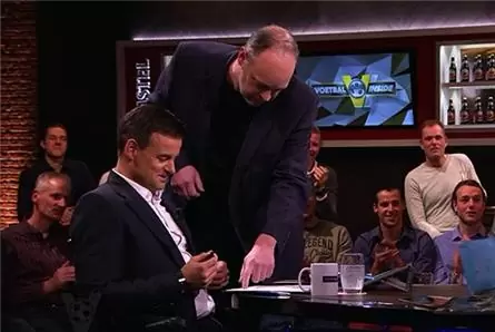 Het is de eerste keer dat een presentator live op Nederlandse televisie zijn contract tekent.