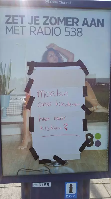 Veel mensen op twitter blijven maar klagen over de reclameposter van Radio 538. Twee weken geleden maakte iemand al een parodie op de reclamecampagne. Niet met een slank modelletje, maar van haar (te dikke) vriend. En deze week hebben mensen de gewaagde poster afgeplakt met de tekst: “Moeten onze kinderen hier naar kijken?” (zie foto)