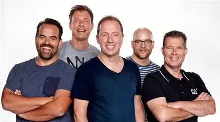 V.l.n.r.: Niels van Baarlen, Henk Blok, Edwin Evers, Jelte van der Goot en Rick Romijn