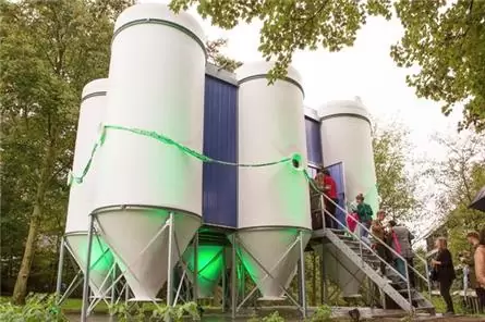 Architect Jord den Hollander: “Met het verbouwen van 6 veevoedersilo’s tot thuisbasis van het tv-programma de Buitendienst wordt op een inventieve manier een voorbeeld gegeven voor creatief hergebruik.