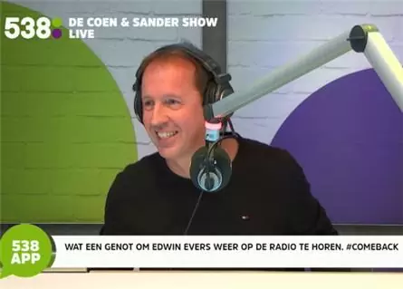 Edwin Evers is de komende weken als invaller in de middag te horen op Radio 538. Hij vervangt Coen Swijnenberg die momenteel wegens omstandigheden thuis zit. “Ik vind het superleuk om hier te zijn”, vertelde Evers, maar wenste Swijnenberg gelijk al het goeds.