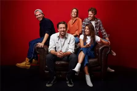 Foto: v.l.n.r.: Joe Stam, Mattie Valk, Anne-Marie Rozing, Marieke Elsinga en Tom de Graaf (Qmusic)