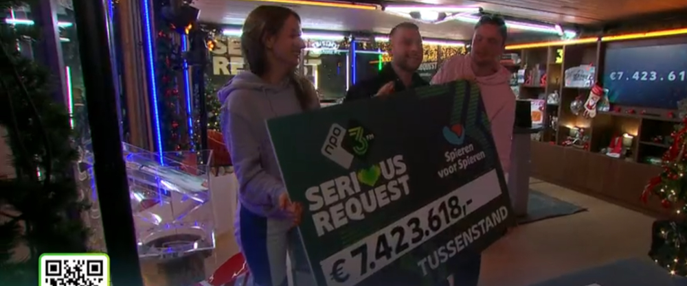 Dit jaar gaat de opbrengst van 3FM Serious Request naar Spieren voor Spieren. Er zijn inmiddels 20.000 kinderen met een spierziekte in Nederland. Hun spieren worden zwakker. Soms stoppen ze er helemaal mee. In het ergste geval overlijden ze eraan. Hoe eerder een spierziekte in beeld is, hoe groter de kans dat een kind geholpen kan worden. Vroegtijdige diagnose en de juiste behandelingen kan de achteruitgang van kinderen met een spierziekte afremmen of zelfs stoppen.
